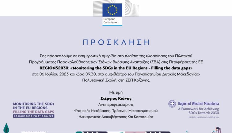 Eνημερωτική ημερίδα για το πρόγραμμα παρακολούθησης των Στόχων Βιώσιμης Ανάπτυξης στις Περιφέρειες της Ε.Ε